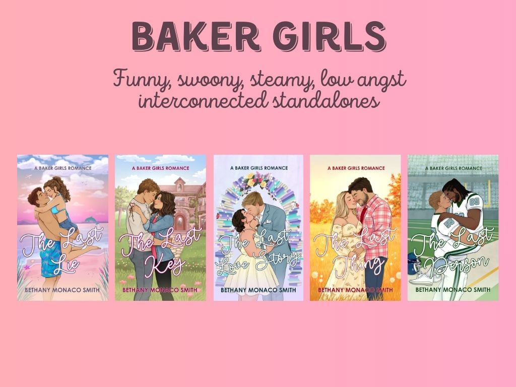 This series of rom-coms features love stories from the Baker Girls (Frannie, Kennedy, and Hallie), and a few of their closest friends. You’ll find swoony small town romances with low angst, laugh out loud moments, and plenty of steam.